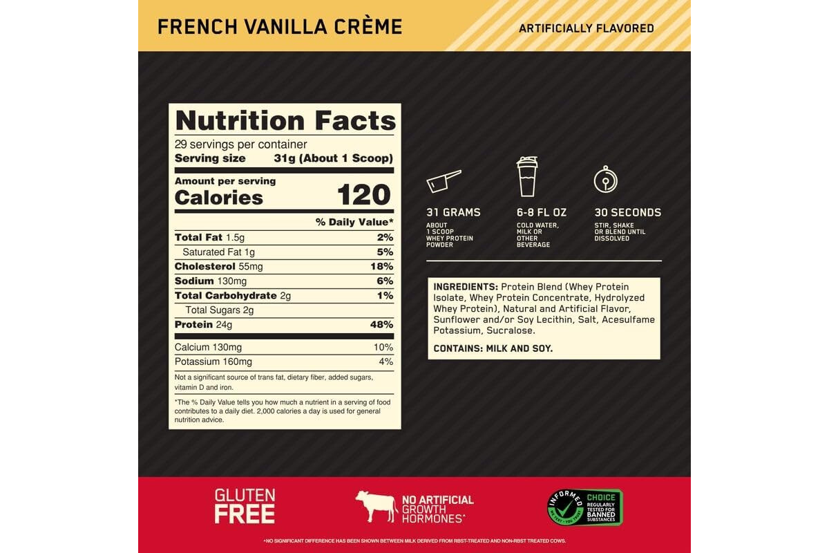 Optimum Nutrition Gold Standard 100% Whey Protein Powder, French Vanilla Creme, 2 Pound (Packaging May Vary)
