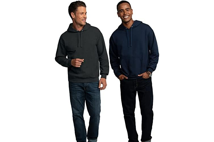 Fruit of the Loom Men's Eversoft Fleece Hoodies, Full Zip, Moisture Wicking & Breathable, Sizes S-4X, Pullover-2 Pack-Black Heather/Navy, Large