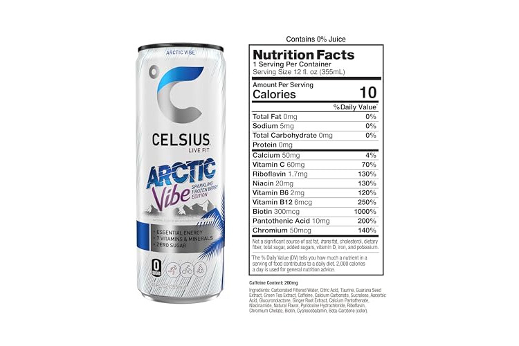 CELSIUS ARCTIC VIBE Sparkling Frozen Berry, Sugar Free Energy Drink, 12 Fl Oz (Pack of 12)