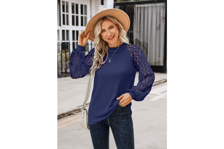 MIHOLL Women’s Long Sleeve Tops Lace Casual Loose Blouses T Shirts