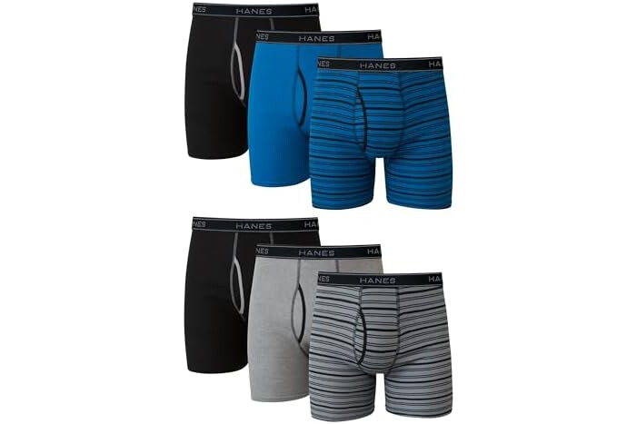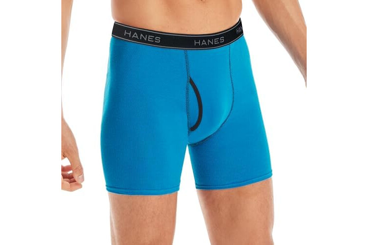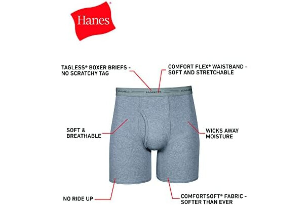 This Hanes value pack includes men's boxer briefs crafted from soft and breathable cotton or a cotton-rich blend (depending on the color) for everyday comfort. You'll appreciate the no-ride-up fit, smooth Tagless interior, and an improved Comfort Flex waistband that now adjusts to fit you. Moisture-wicking Cool Comfort fabric helps keep you cool and comfortable in this men's underwear- no matter how long your day is. Stock up and save with a multi-pack of men's boxer briefs so you can always keep a clean pair of Hanes underwear on hand.