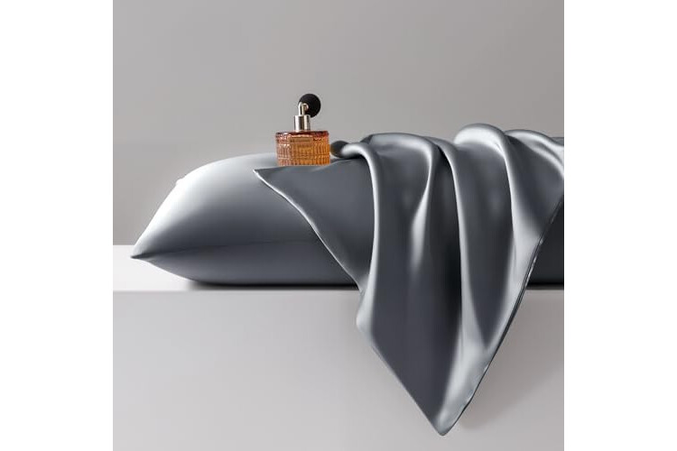 Bedsure Satin Pillowcase for Hair and Skin Queen - Space Grey Silky Pillowcase 2 Pack with Envelope Closure, Similar to Silk Pillow Cases, Gifts for Women Men, 20x30 Inches, 2pcs