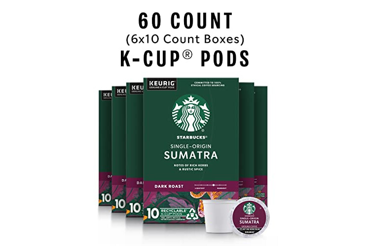 Starbucks K-Cup Coffee Pods, Dark Roast Coffee, Sumatra for Keurig Brewers, 100% Arabica, 6 boxes (60 pods total)