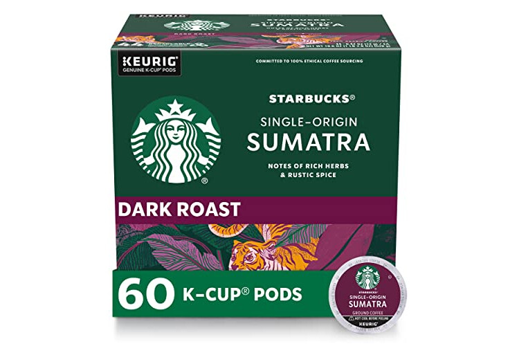 PREMIUM COFFEE IN KEURIG K-CUPS—Starbucks delivers exceptional coffee cup after cup with Sumatra dark roast coffee K-Cups—60 total coffee pods for Keurig coffee makers