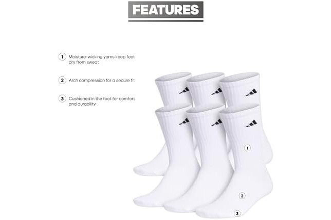 adidas Men's Athletic Cushioned 6-Pack Crew, Cushioned Crew Socks with Arch Compression for a Secure Fit