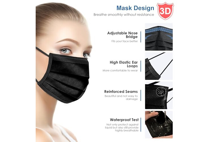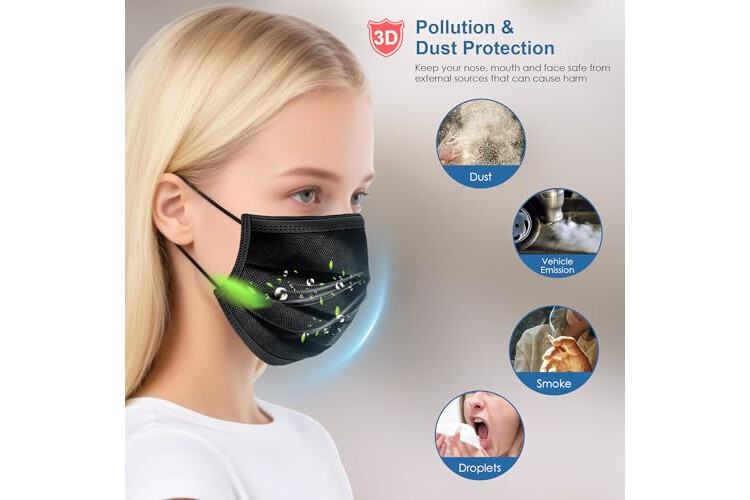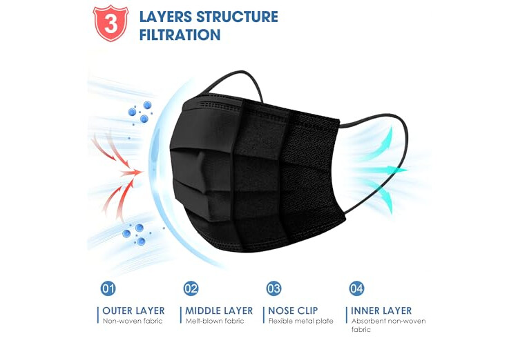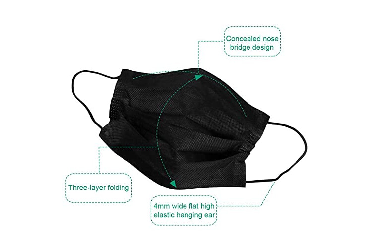 NNPCBT 500PCS 3 ply black disposable masks filter mask