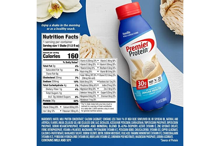 Premier Protein Shake, Vanilla, 30g Protein, No Added Sugar, 24 Vitamins & Minerals to Support Immune Health, 11.5 fl oz, 12 Pack (Packaging May Vary)