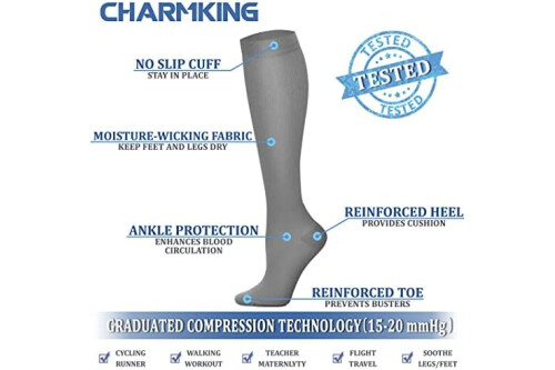 CHARMKING Compression Socks for Women & Men Circulation (3 Pairs) 15-20 mmHg is Best Support for Athletic Running Cycling
