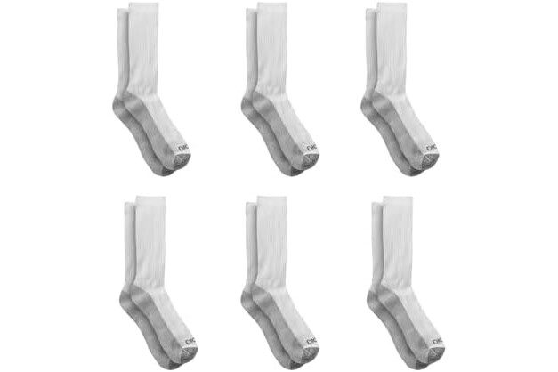 Dickies Men's Dri-Tech Original Moisture Control Crew Socks, Available in M-XXL (6, 12, 18 Pairs), White (6 Pairs), X-Large