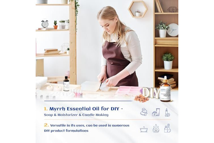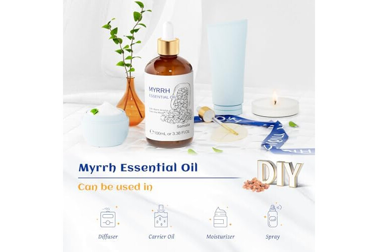 DIY: Add myrrh oil to massage oils, candles, aromatherapy, diffusers, diffusers, sprays, body lotions, creams, serums, bath salts and soaps
