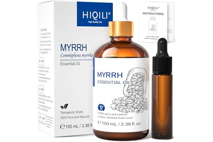 HIQILI 100ML Myrrh Essential Oil for Skin, Diffuser & Candle, 100% Pure and Natural - 3.38 Fl Oz