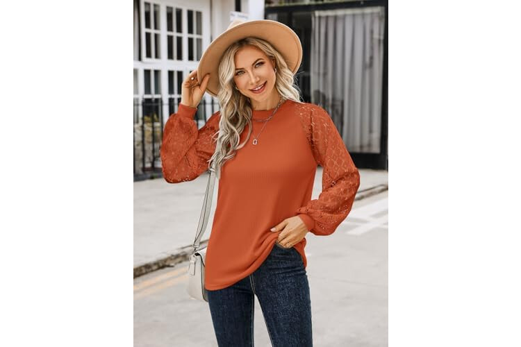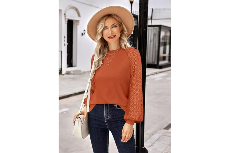 MIHOLL Women’s Long Sleeve Tops Lace Casual Loose Blouses T Shirts