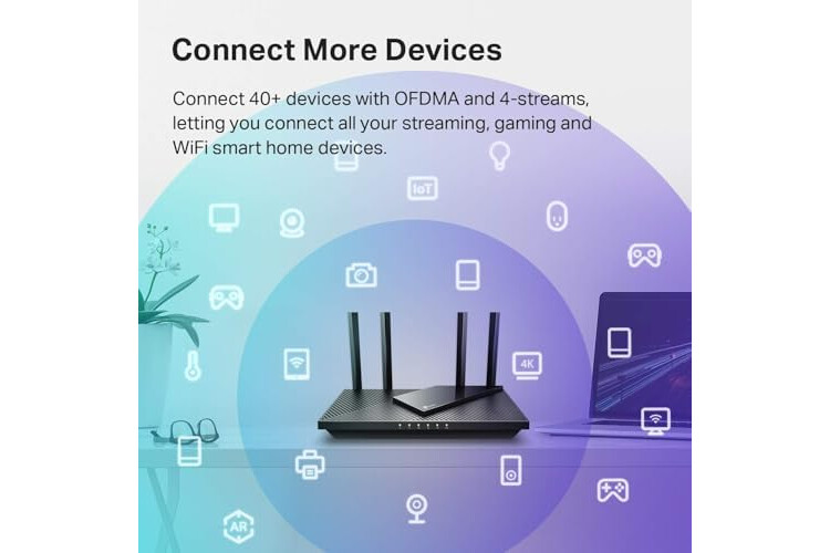 AX1800: Enjoy smoother and more stable streaming, gaming, downloading with 1.8 Gbps total bandwidth (up to 1200 Mbps on 5 GHz and up to 574 Mbps on 2.4 GHz). Performance varies by conditions, distance to devices, and obstacles such as walls.