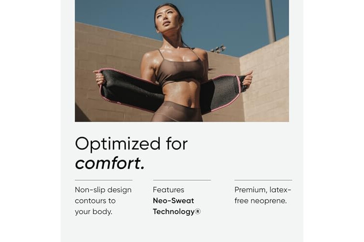 SWEAT FASTER, SWEAT HARDER: Waist trimmer designed with Neo-Sweat Technology, an anti-slip, moisture-repelling interior that provides superior heat insulation to increase core temperature for a harder, faster sweat and to cut excess water weight
