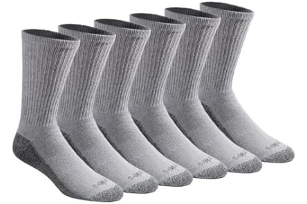 Dickies dri-tech comfort 6 Pairs crew with wicking, moisture management fibers keeps feet dry, ventilation channels engineered for air circulation and moisture control, arch compression hugs feet and keeps socks in place, while providing in-step support, Reciprocated heel and toe for superior fit and full cushion comfort