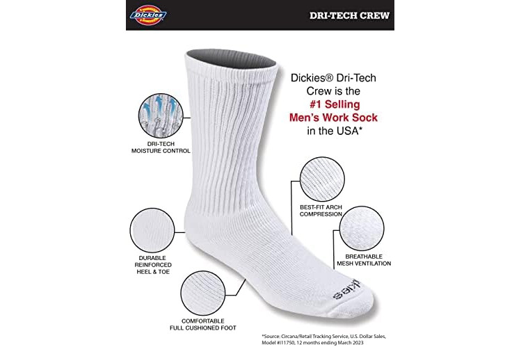 Dickies Men's Dri-Tech Essential Moisture Control Crew Socks (6 & 12 Pairs)