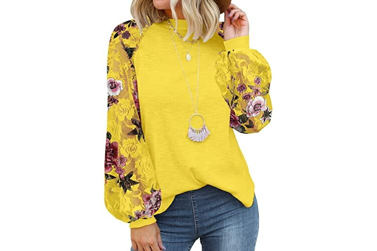 MIHOLL Women’s Long Sleeve Tops Lace Casual Loose Blouses T Shirts