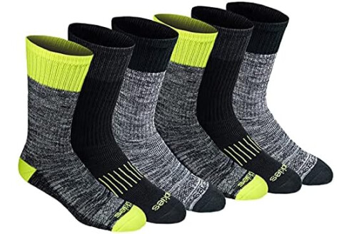 Dickies Men's Dri-Tech Original Moisture Control Crew Socks, Available in M-XXL (6, 12, 18 Pairs), Hi-Vis Yellow Black (6 Pairs), X-Large