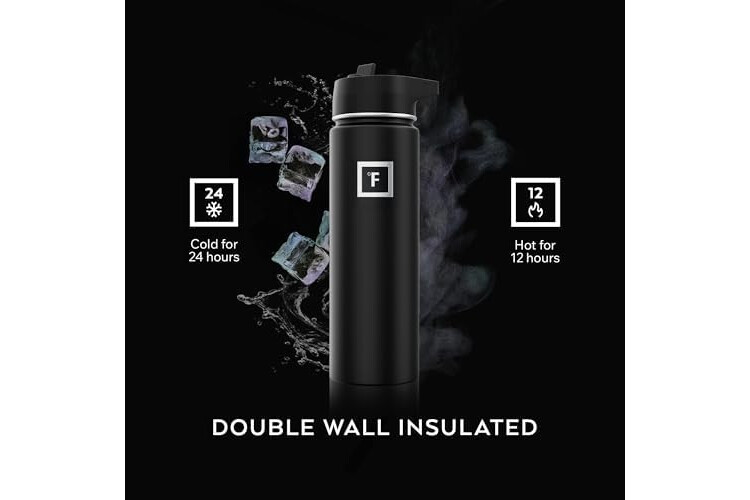 INSULATED SPORTS WATER BOTTLE: Goodbye sweat! The double wall insulation makes the Iron Flask sweat-free! It keeps your drink COLD for up to 24 hours, and HOT for up to 12 hours. *NOTE: ONLY the 14 Oz, 18 Oz, & 22 Oz fit in cupholders*