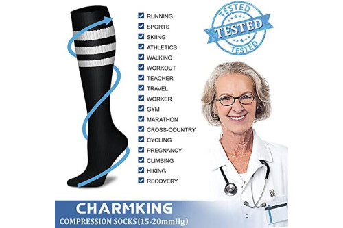 CHARMKING Compression Socks for Women & Men Circulation (3 Pairs) 15-20 mmHg is Best Support for Athletic Running Cycling