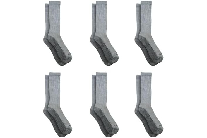 Dickies dri-tech comfort 6 Pairs crew with wicking, moisture management fibers keeps feet dry, ventilation channels engineered for air circulation and moisture control, arch compression hugs feet and keeps socks in place, while providing in-step support, Reciprocated heel and toe for superior fit and full cushion comfort