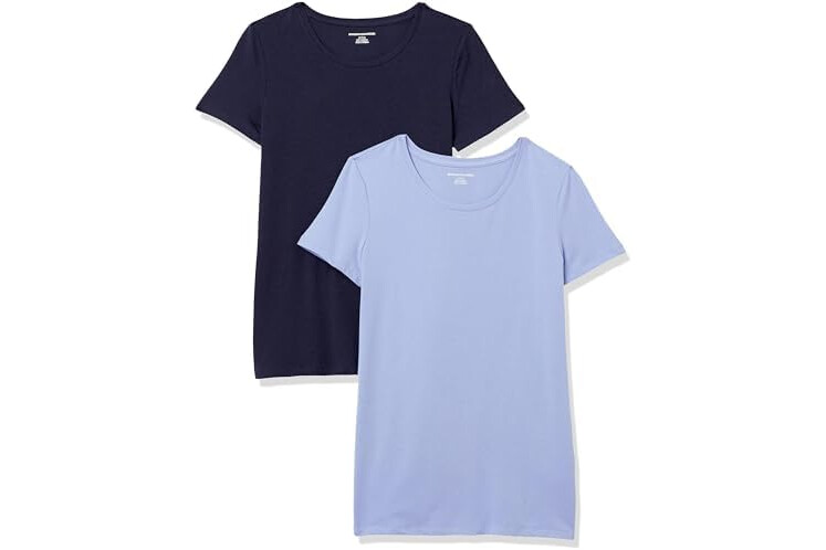Amazon Essentials Women's Regular-Fit Short-Sleeve Crewneck T-Shirt, Pack of 2, Navy/Purple, X-Small