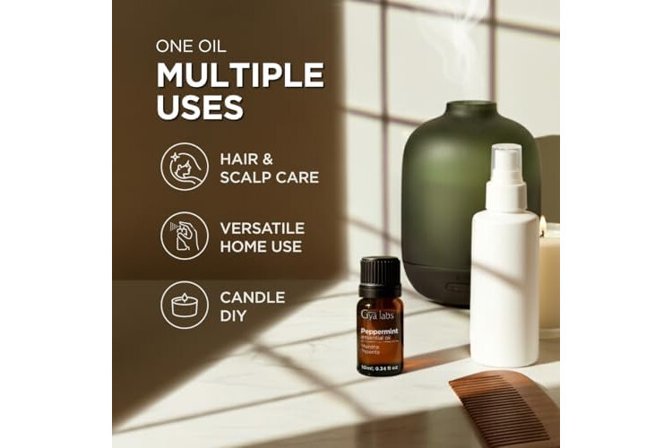 Gya Labs Peppermint Essential Oil for Hair – 0.34 Fl Oz – Premium Grade Essential Oils for Diffuser, Aromatherapy, Hair Care, Skin Care, Body, Massage & DIY Candle Making Scents