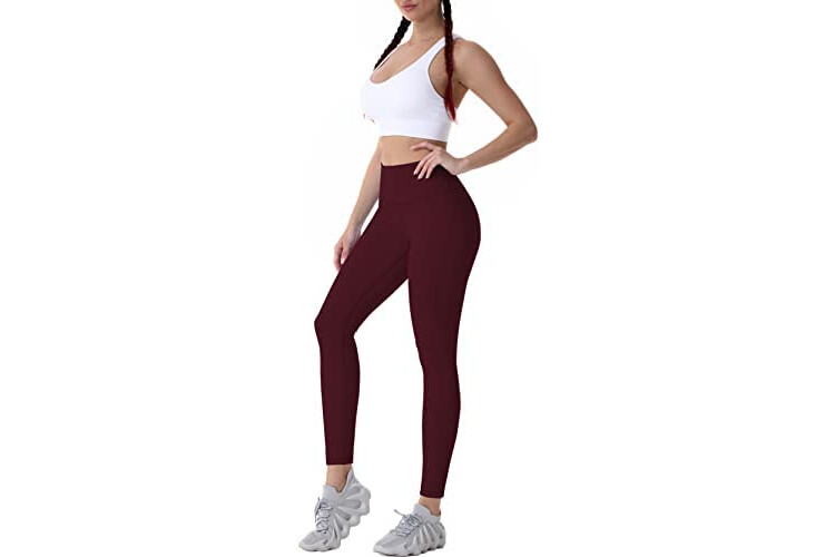 Sunzel Workout Leggings for Women, Squat Proof High Waisted Yoga Pants 4 Way Stretch, Buttery Soft, Black Cherry, Large