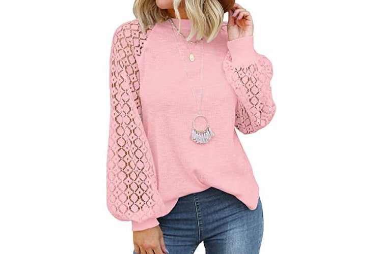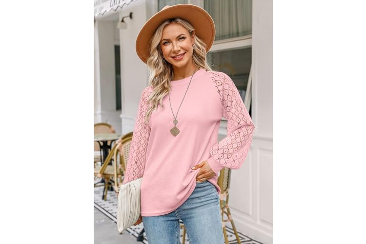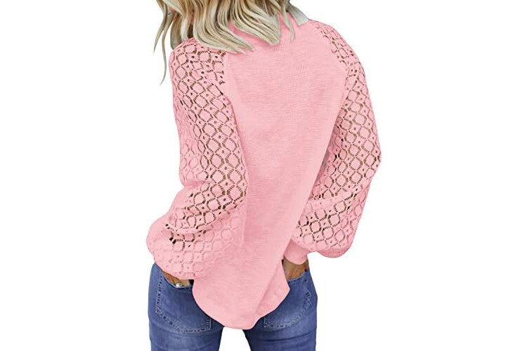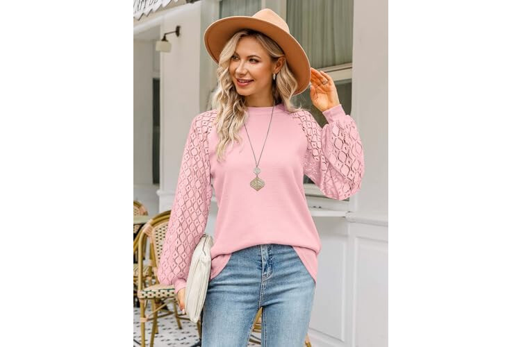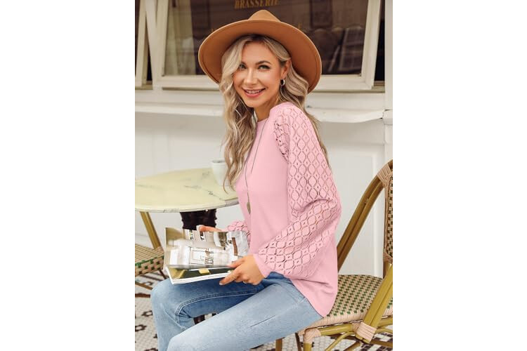 MIHOLL Women's Long Sleeve Tops Lace Casual Loose Blouses T Shirts