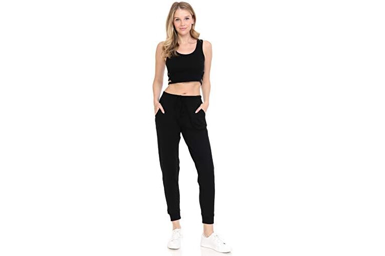 Leggings Depot Women's Cotton Jogger Sweatpants French Terry Yoga Pants with Pockets
