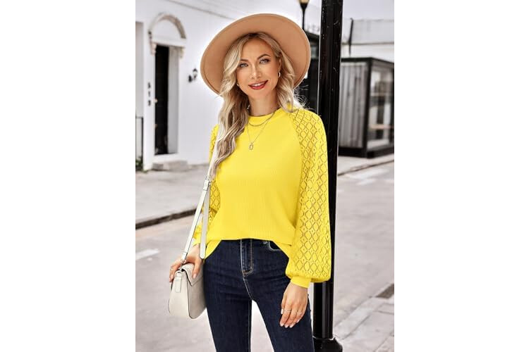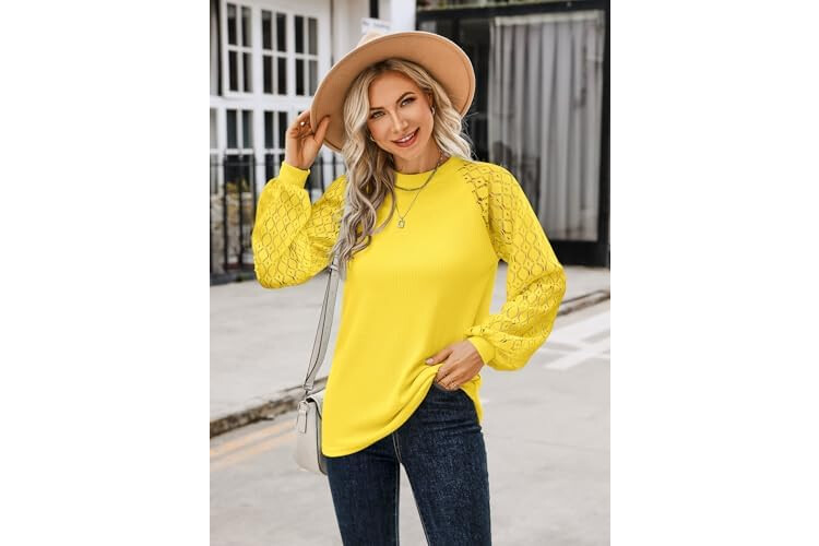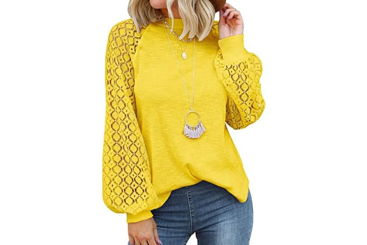 MIHOLL Women’s Long Sleeve Tops Lace Casual Loose Blouses T Shirts