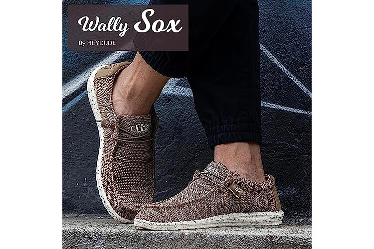 HEYDUDE Men's Wally Sox Brown Size 10 | Men’s Shoes | Men's Lace Up Loafers | Comfortable & Light-Weight