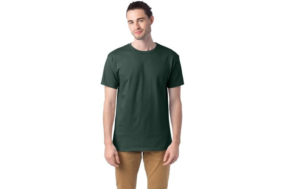 Hanes Men's T-Shirt Pack, Essential-T Cotton T-Shirt, Athletic Dark Green, Medium, 4-Pack