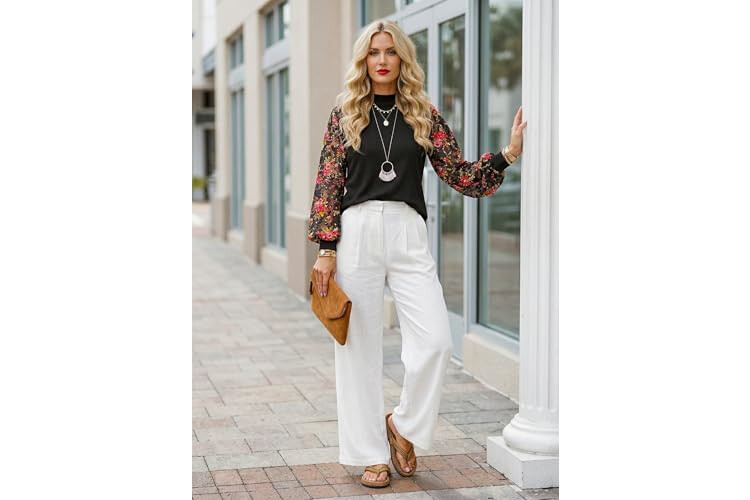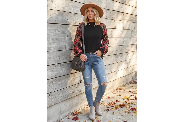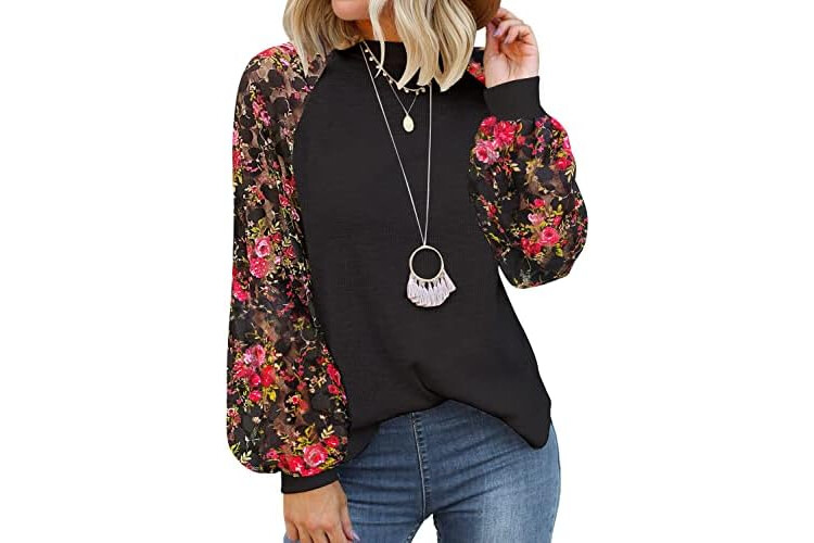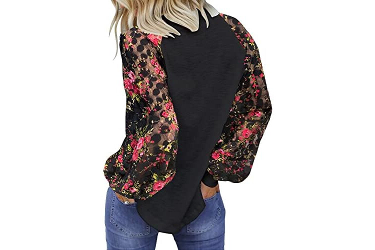 MIHOLL Women's Long Sleeve Tops Lace Casual Loose Blouses T Shirts