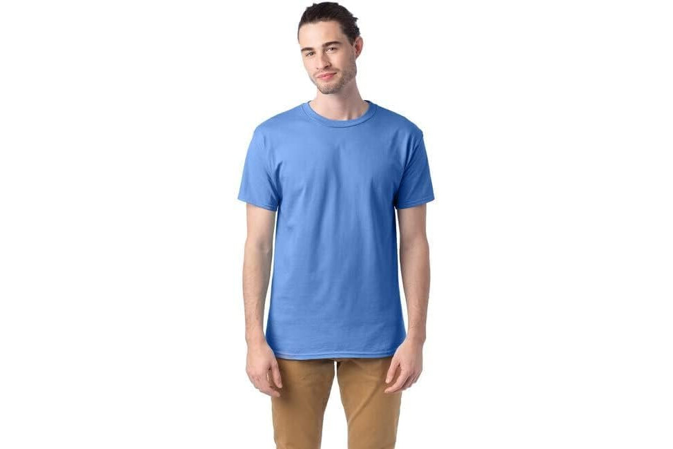 Hanes Men's T-Shirt Pack, Essential-T Cotton T-Shirt, Carolina Blue, Medium, 4-Pack
