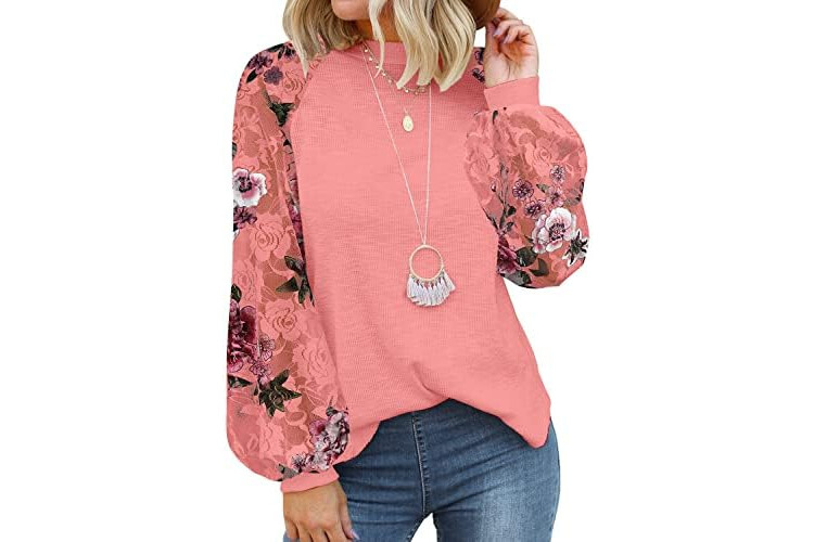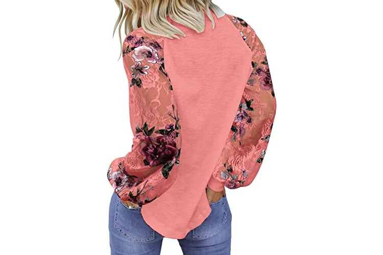 MIHOLL Women's Long Sleeve Tops Lace Casual Loose Blouses T Shirts