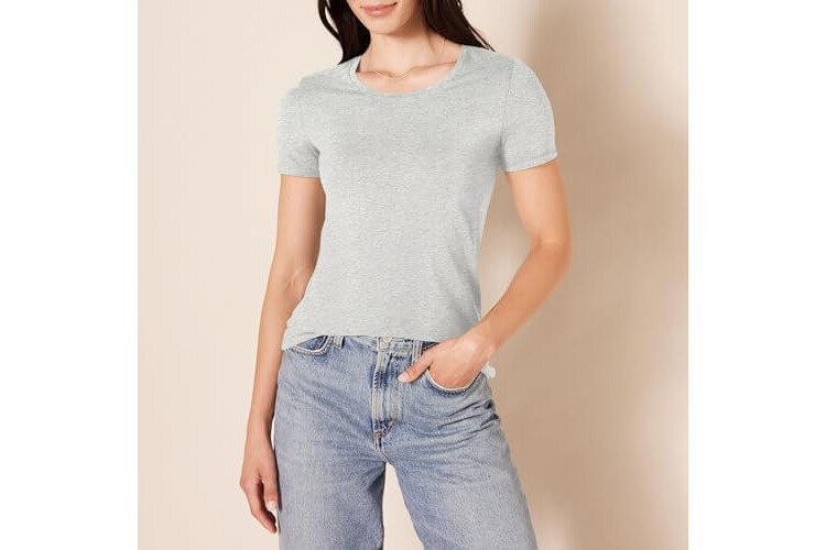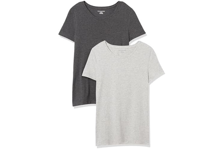 Amazon Essentials Women's Regular-Fit Short-Sleeve Crewneck T-Shirt, Pack of 2, Charcoal Heather/Light Grey Heather, XX-Large