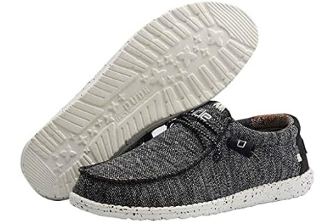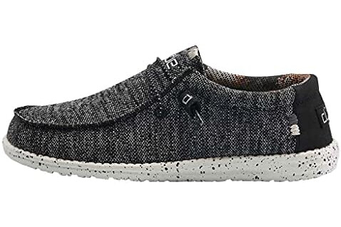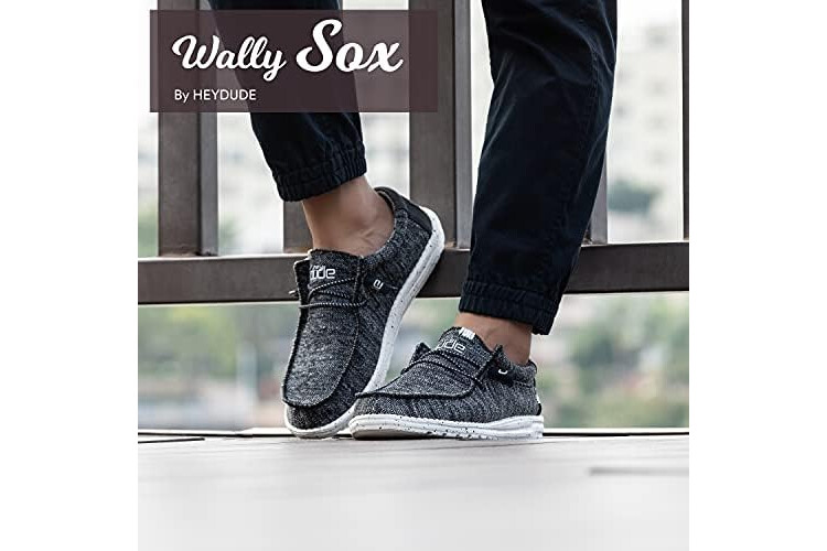 HEYDUDE Men's Wally Sox Black White Size 12 | Men’s Shoes | Men's Lace Up Loafers | Comfortable & Light-Weight