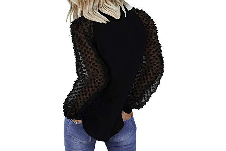 MIHOLL Women’s Long Sleeve Tops Lace Casual Loose Blouses T Shirts