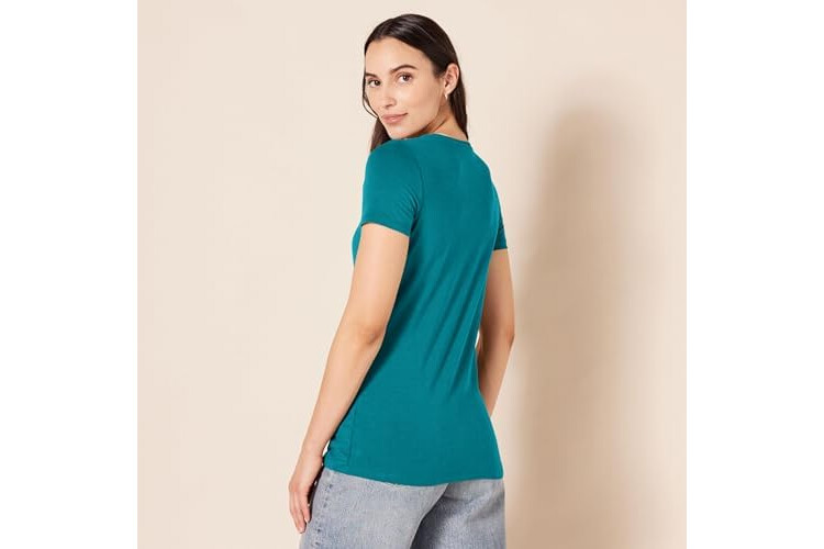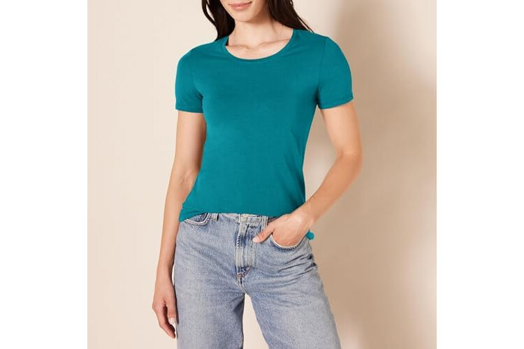 Amazon Essentials Women's Regular-Fit Short-Sleeve Crewneck T-Shirt, Pack of 2, Navy/Teal Green, Small