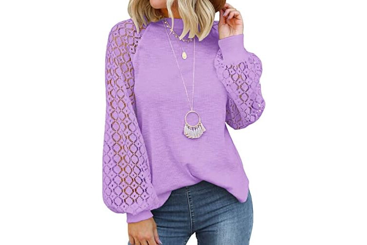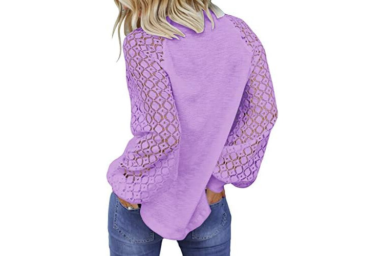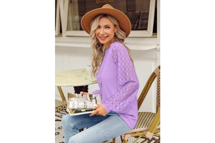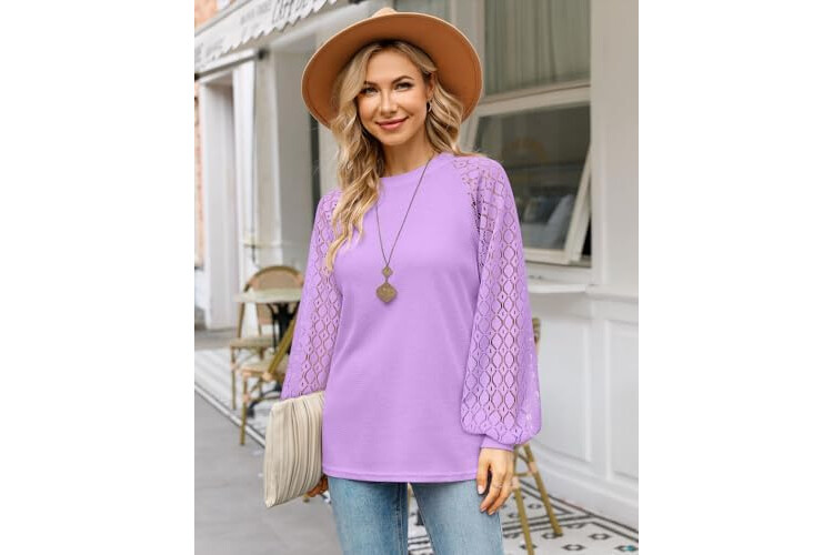 MIHOLL Women's Long Sleeve Tops Lace Casual Loose Blouses T Shirts