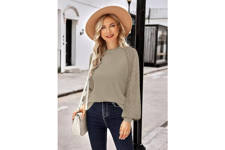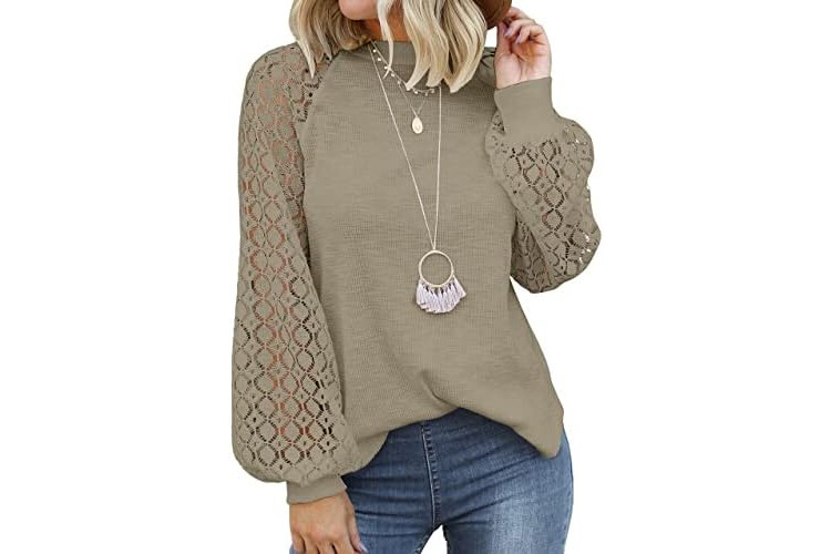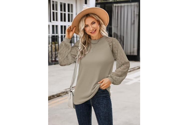 MIHOLL Women’s Long Sleeve Tops Lace Casual Loose Blouses T Shirts