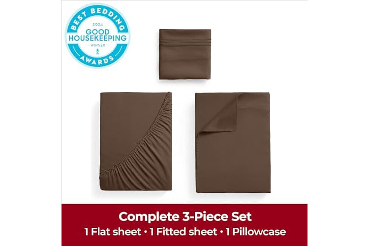 Mellanni Twin Sheets Set - 3 PC Iconic Collection Bedding - Hotel Luxury, Extra Soft, Cooling Bed Sheets - Wrinkle, Fade, Stain Resistant (Twin, Brown)