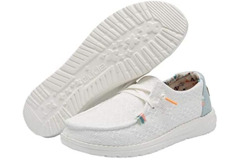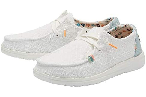 Hey Dude Women's Wendy Boho White Crochet Size 7 | Women’s Shoes | Women’s Lace Up Loafers | Comfortable & Light-Weight