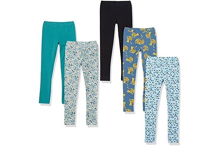Amazon Essentials Girls' Leggings, 5-Pack Blue Cats, Small