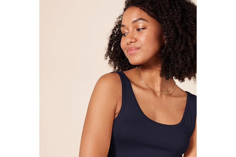 Amazon Essentials Women's Slim-Fit Scoop Neck Tank Top, Pack of 2, Navy/Yellow, Medium