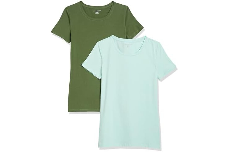Amazon Essentials Women's Regular-Fit Short-Sleeve Crewneck T-Shirt, Pack of 2, Military Green/Mint Green, XX-Large