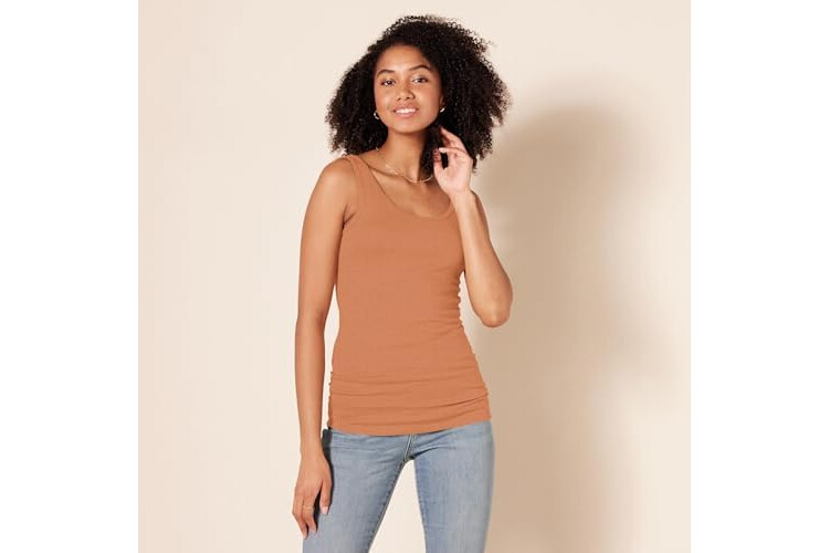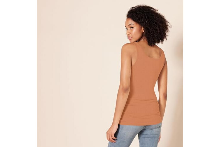 Amazon Essentials Women's Slim-Fit Scoop Neck Tank Top, Pack of 2, Brick Red/Caramel, Medium