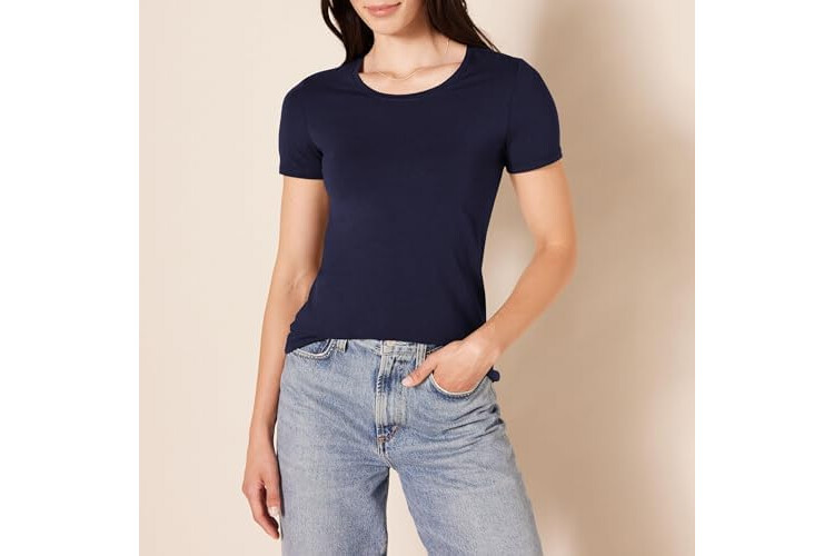 Amazon Essentials Women's Regular-Fit Short-Sleeve Crewneck T-Shirt, Pack of 2, Burgundy/Navy, X-Large