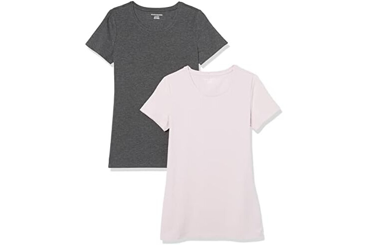Amazon Essentials Women's Regular-Fit Short-Sleeve Crewneck T-Shirt, Pack of 2, Charcoal Heather/Light Purple, X-Large